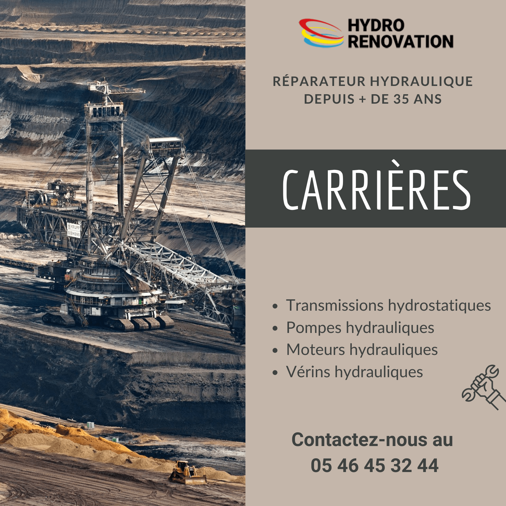 En faisant appel à HYDRO RENOVATION, réparateur hydraulique expérimenté et agréé et/ou certifié par les plus grandes marques de constructeurs hydraulique, les carrières peuvent bénéficier d’une expertise technique et d’un service de qualité.